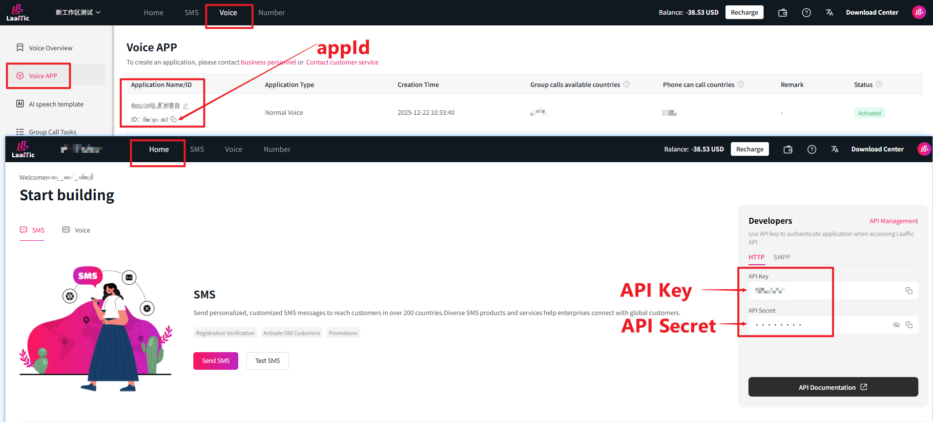 | -1 | Authentication error | Check the parameter values of API Key, API Secret, and appId. |